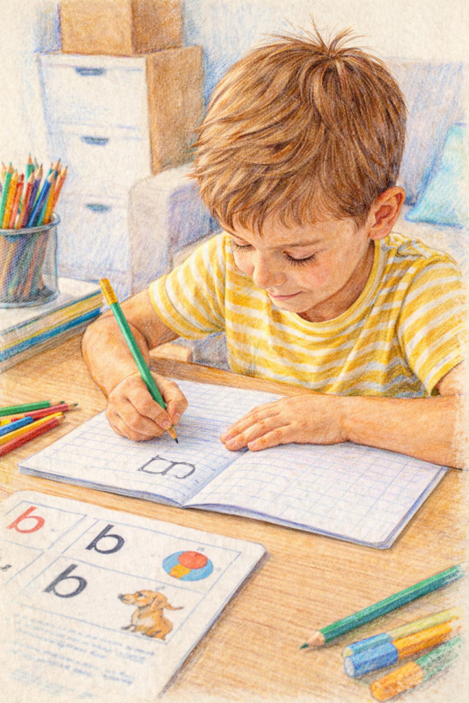 Mylenie liter „b” i „d” jest częstym zjawiskiem na początku nauki czytania i pisania. Najczęściej wynika z niedojrzałości percepcji wzrokowej, trudności w orientacji przestrzennej lub niewystarczającej automatyzacji wzorców literowych.